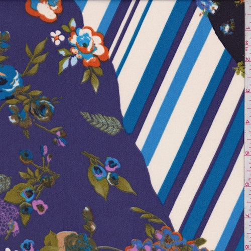 Dark Plum/Aqua Floral Patchwork Crepe Fabric