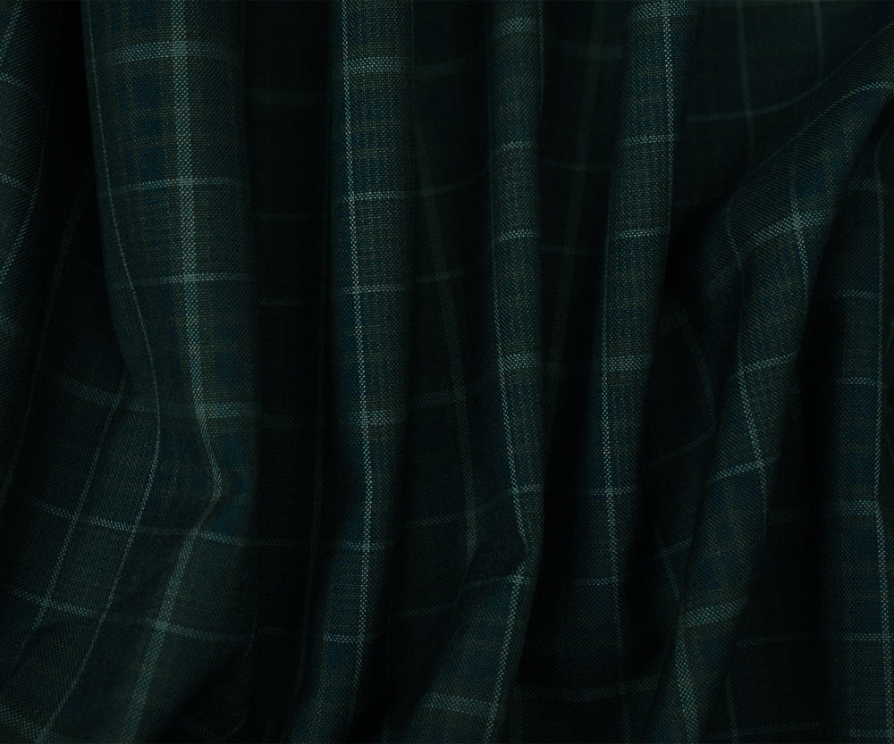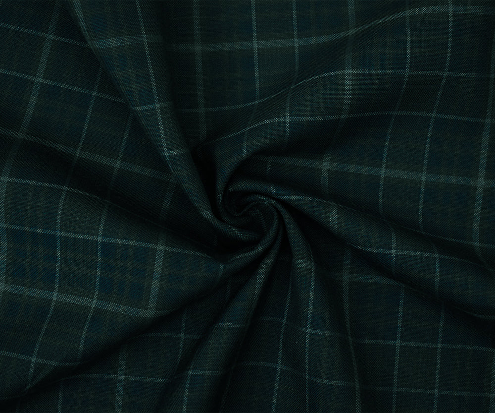 Deep Blue-Gray Wool Polyester Plaid Woven Shirting Fabric
