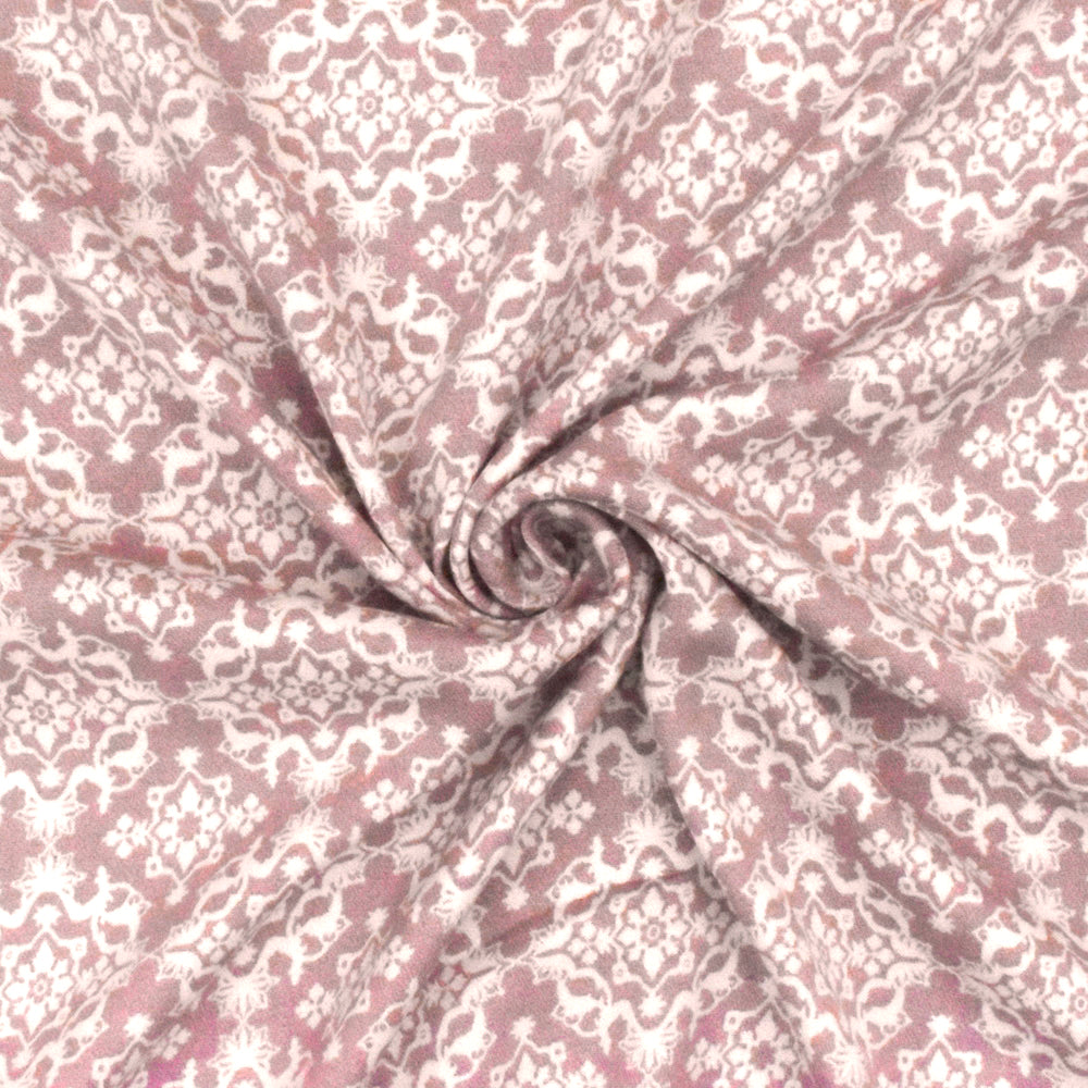 Dusty Pink-Ivory Moroccan Printed Stretch Rayon Momie Woven Fabric