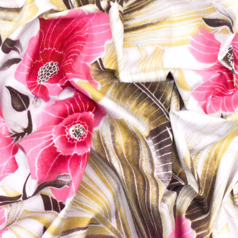 Flower Red-White-Multi Floral Printed Stretch Cotton Poplin Woven Fabric