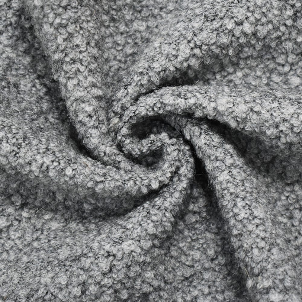 Gray Wool-Poly Boucle Knit Fabric