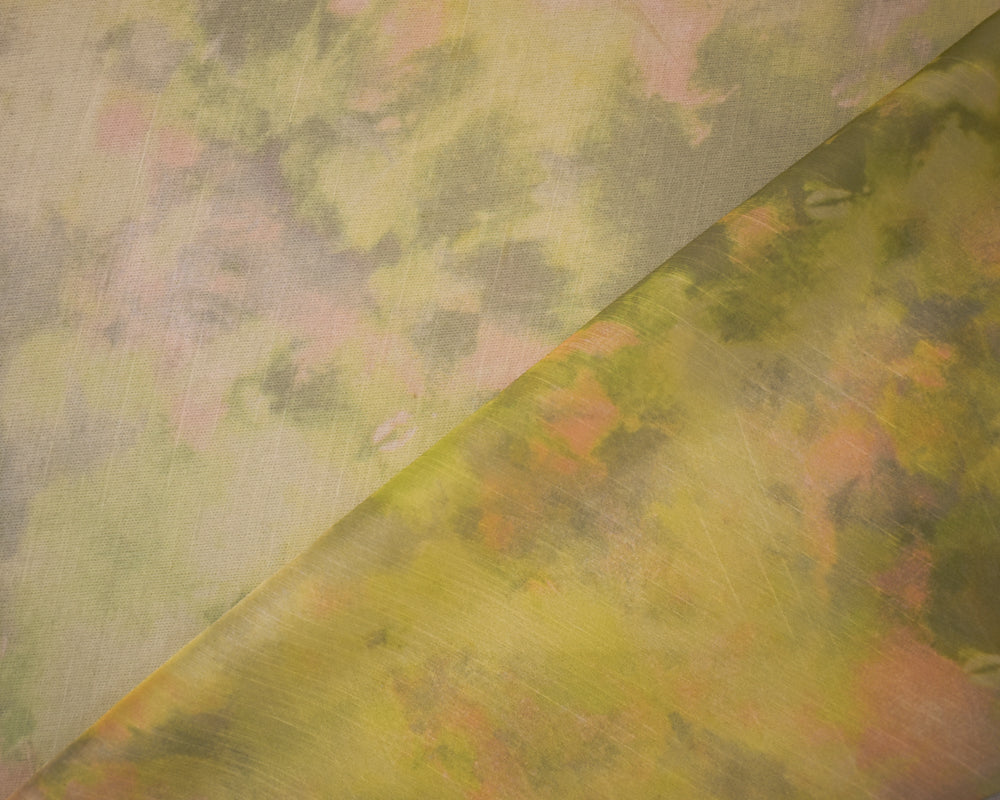 Green-Beige Poly Tie Dye Printed Crinkle Yoryu Chiffon Woven Fabric