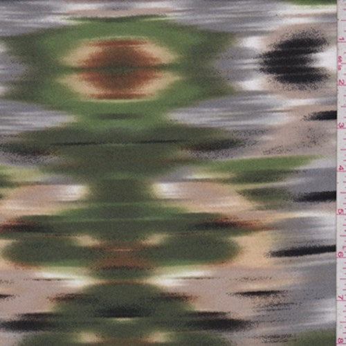 Green/Grey/Tan Flamestitch Print Jersey Knit Fabric