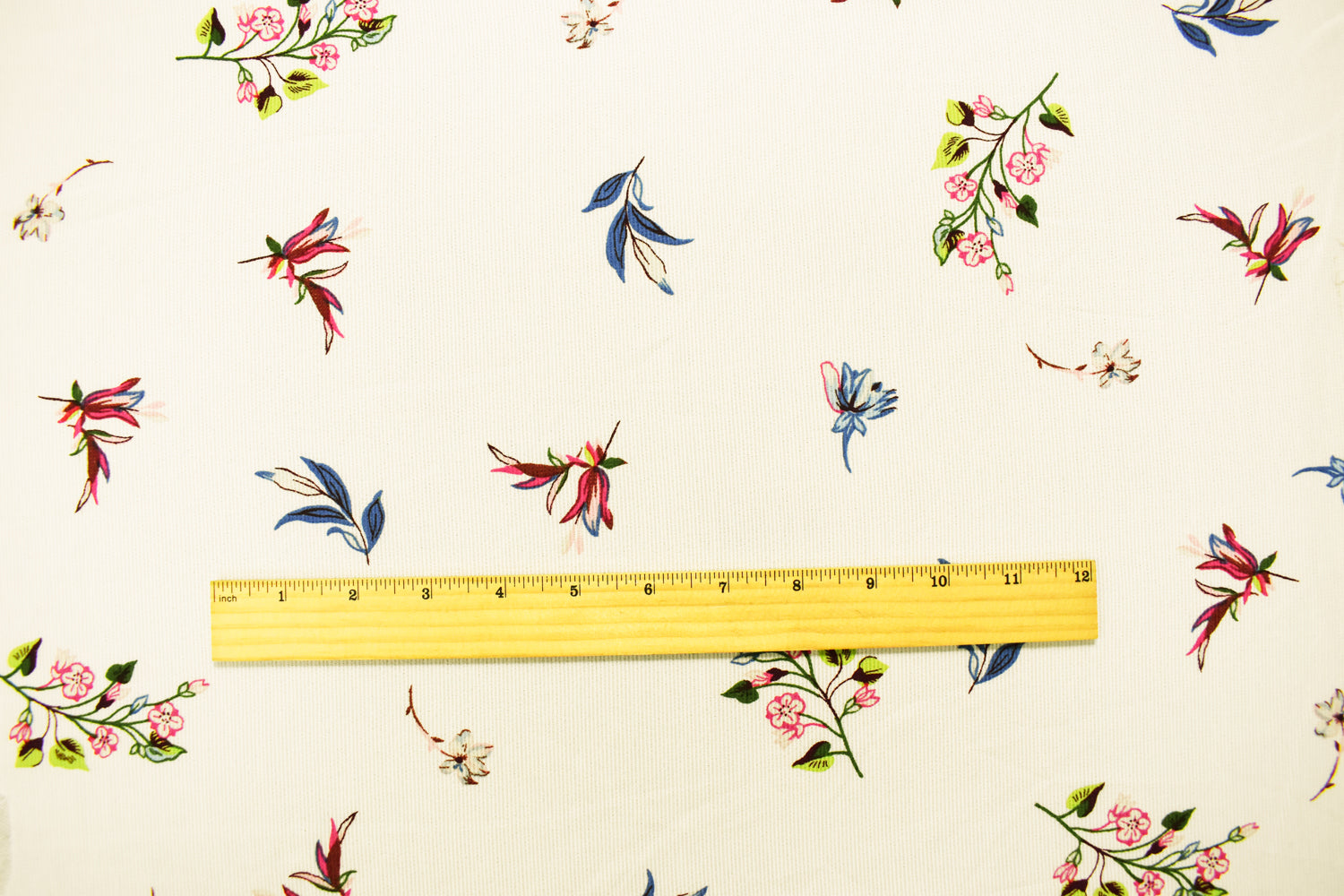 Ivory-Green-Multi Poly Floral Printed Semi-Sheer Striped Dobby Woven Fabric