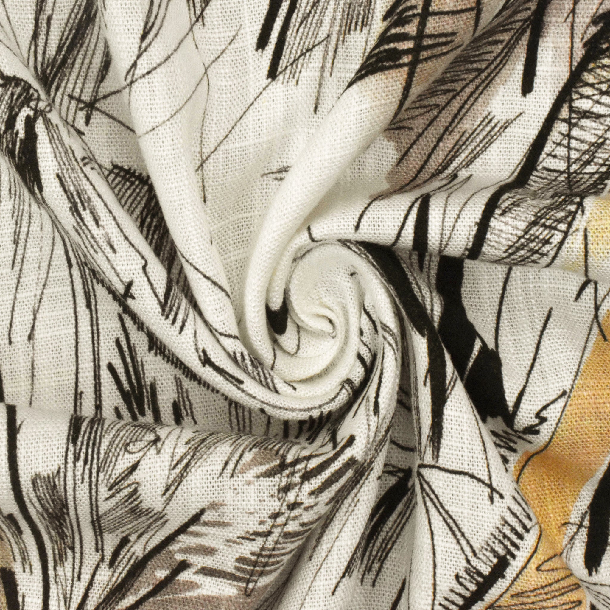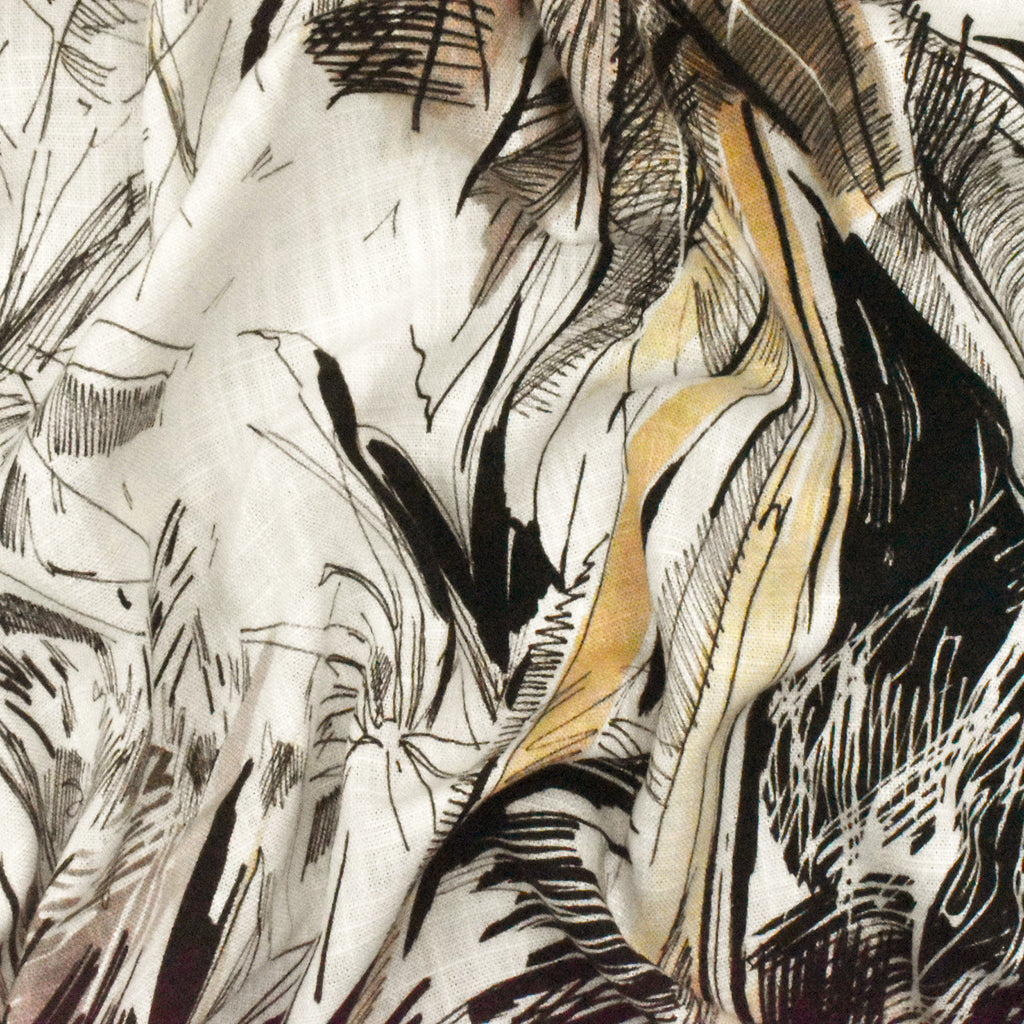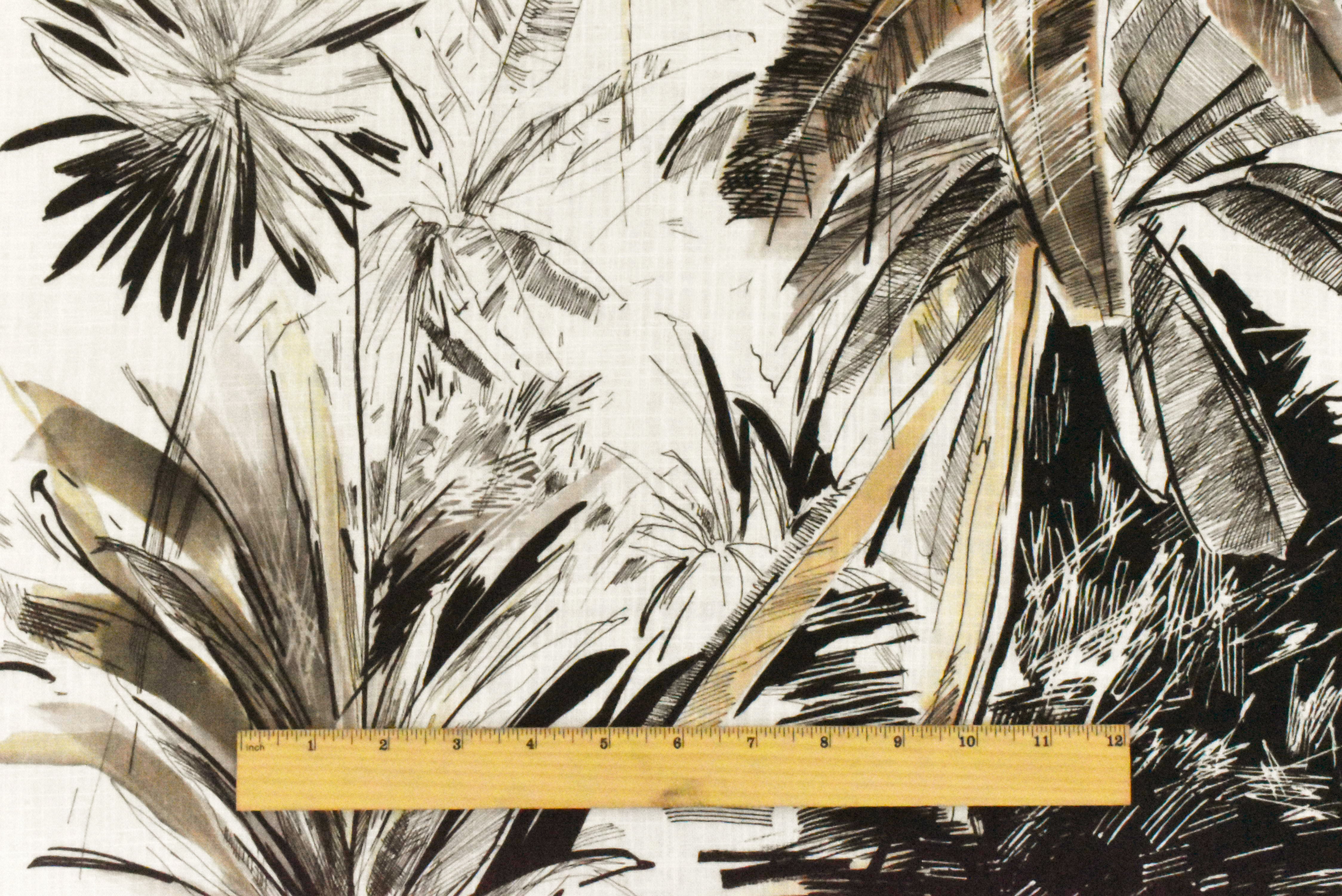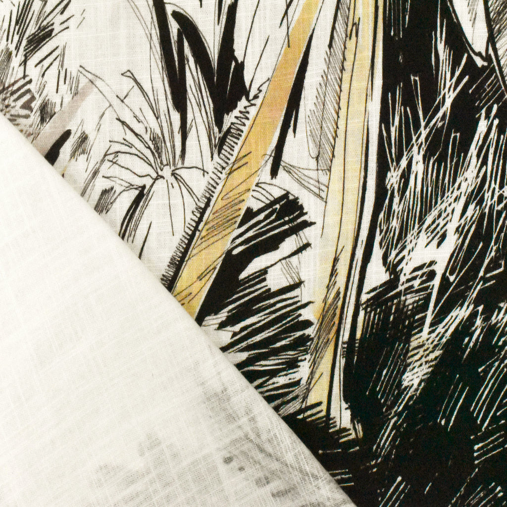 Ivory-Multi Famous Designer Palm Tree Printed Cross-Hatch Woven Fabric