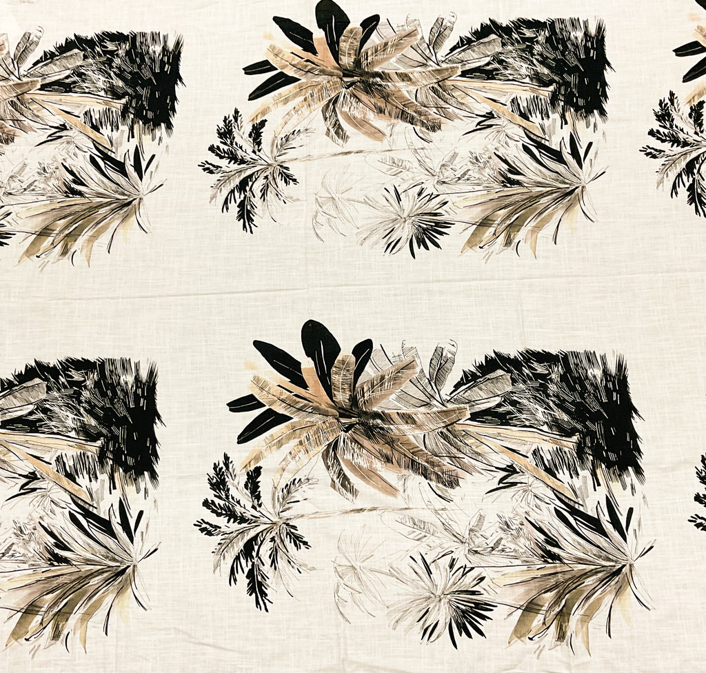 -Famous designer, abstract palm tree printed cross-hatch woven fabric, made in Italy. PLEASE NOTE: This fabric is a PANEL. Each piece will have TWO palm art motif, each motif is approx. 22" x30". One Piece (Panel) will be approx. 36"x 51"