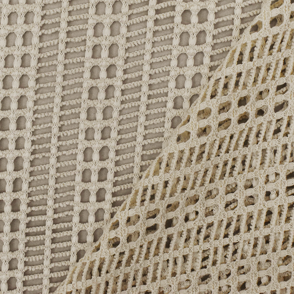 Light Beige Stripe Net-like Stretch Nylon Crochet Knit Fabric