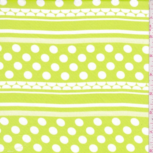 Lime/White Polka Dot Stripe Rayon Challis Fabric