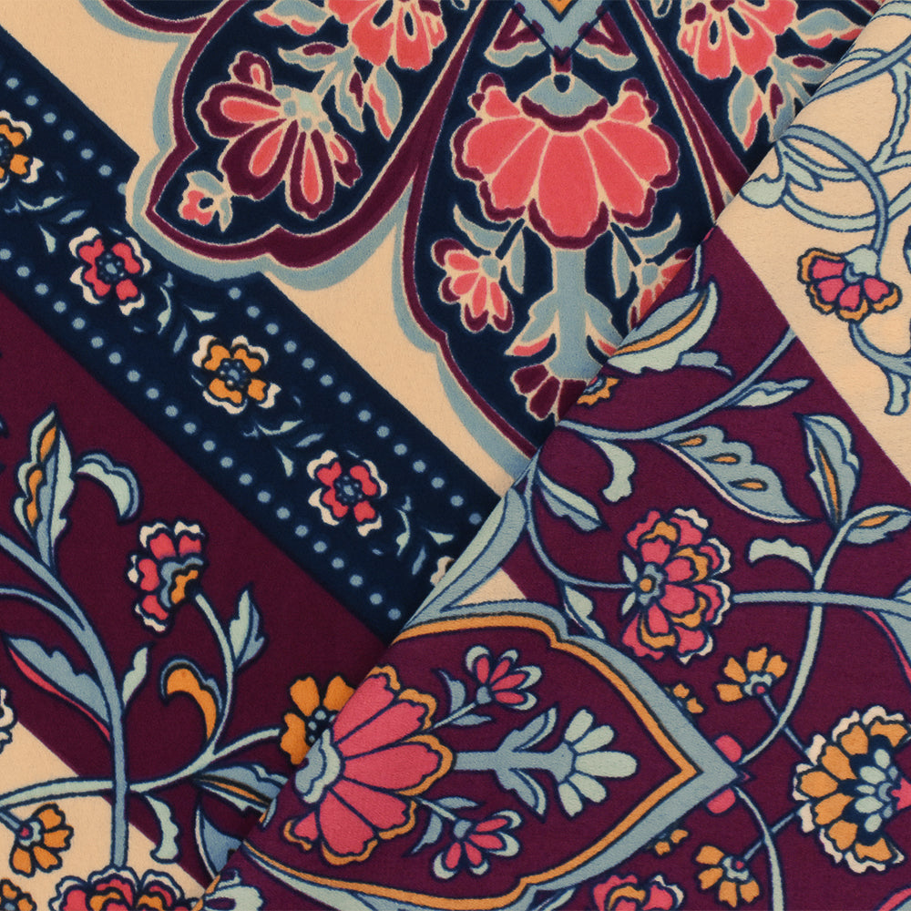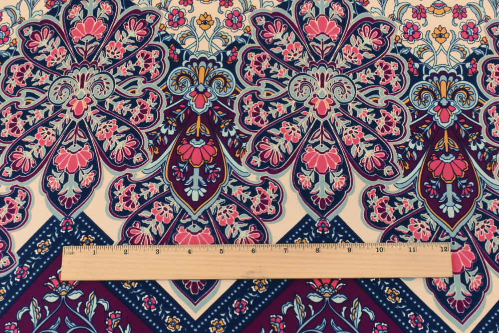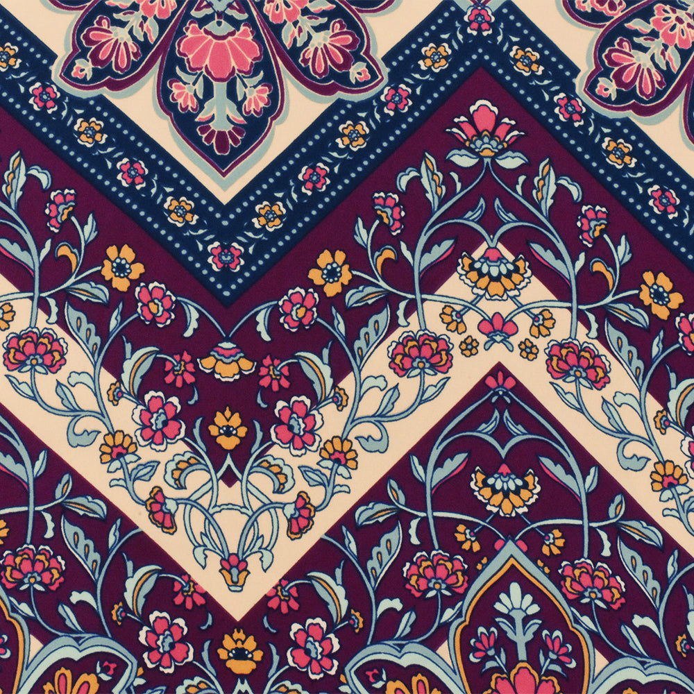 Magenta-Blue-Multi Floral Chevron Printed Poly Georgette Woven Fabric