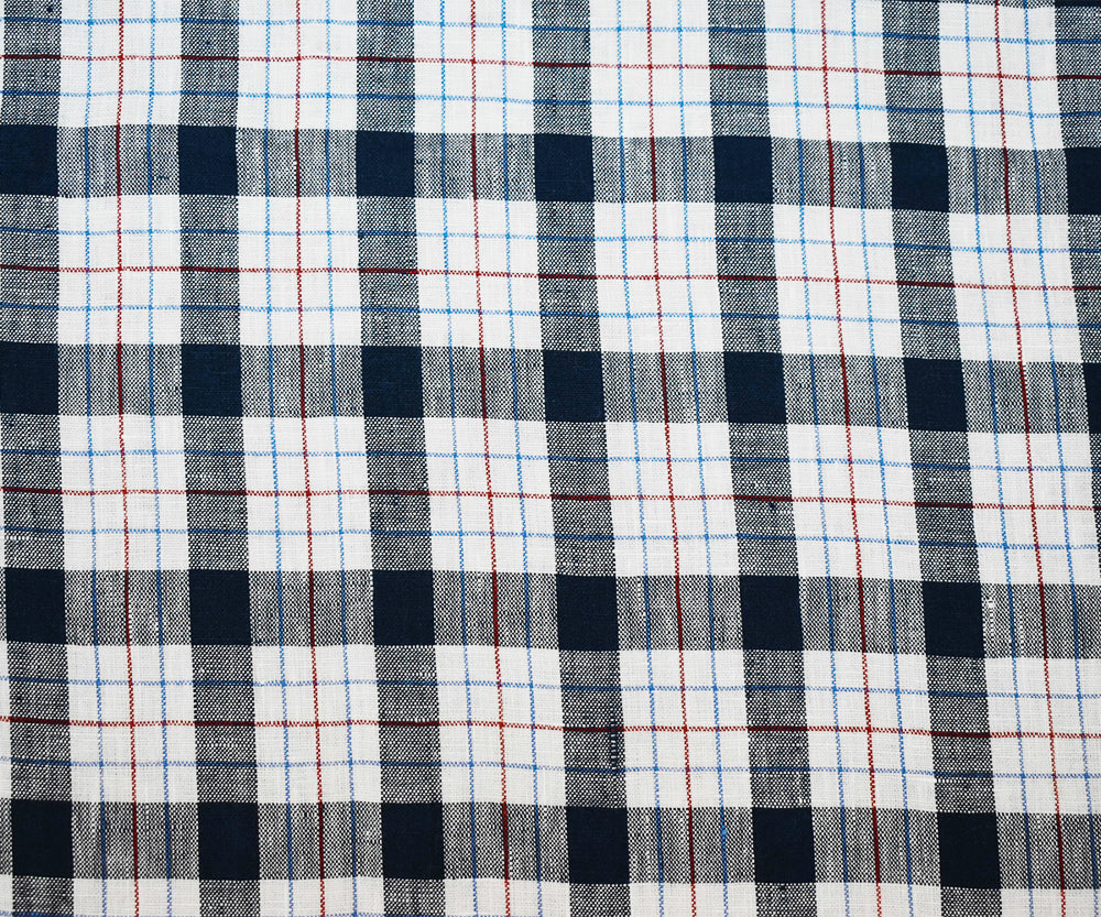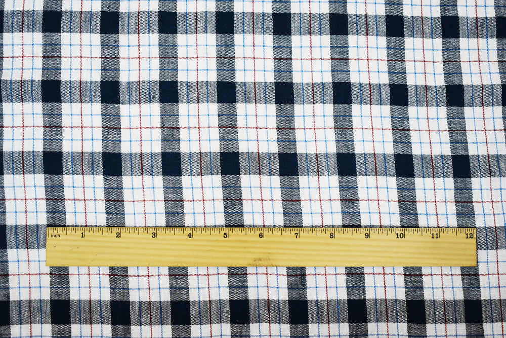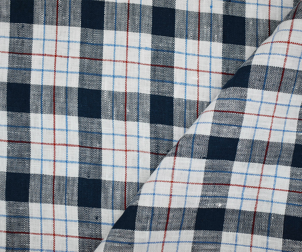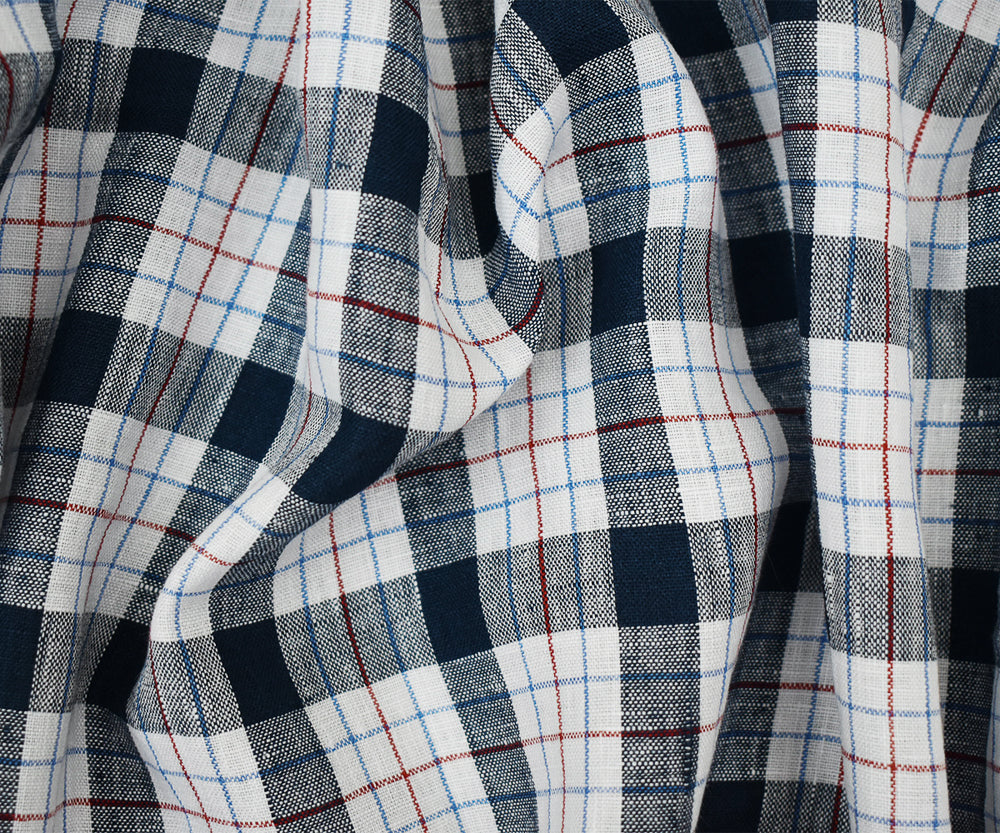 Navy-White-Red Moygashel Washed Plaid Irish Linen Woven Fabric