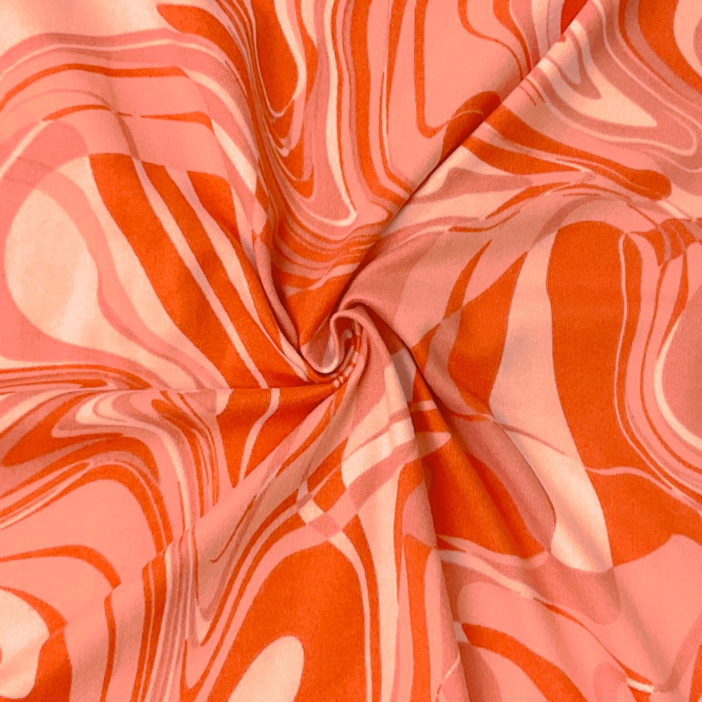 Orange-Multi Poly Spandex Stretch Abstract Print DB Jersey Knit Fabric