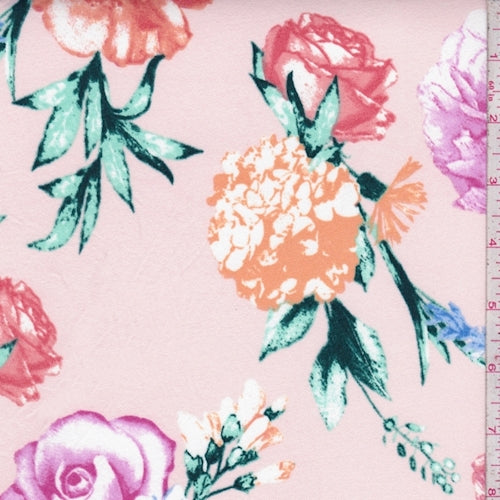 Pale Pink/Fuchsia Multi Floral Sprig Double Brushed Jersey Knit Fabric