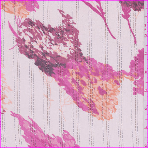 Peach/Pink Floral Metallic Stripe Crinkled Silk Chiffon Fabric