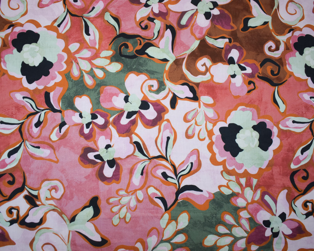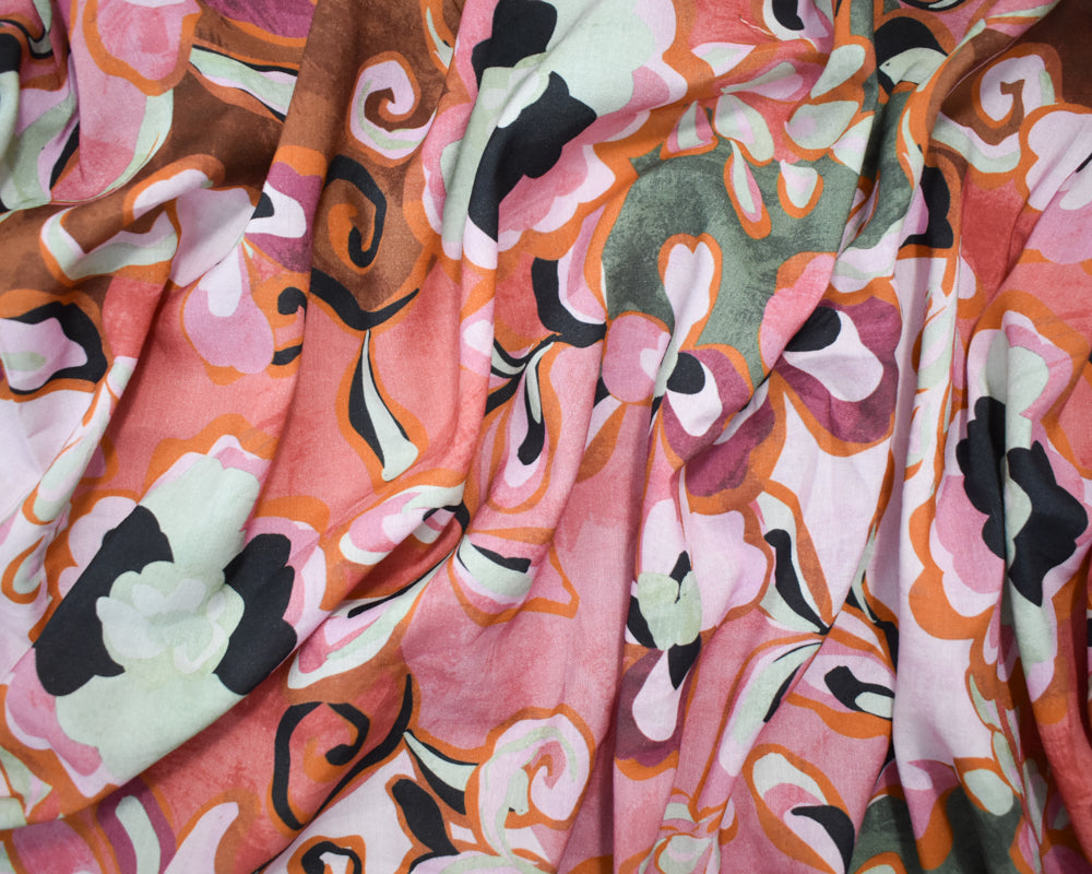 Pink-Orange-Multi Cotton-Rayon Abstract Floral Printed Lawn Woven Fabric