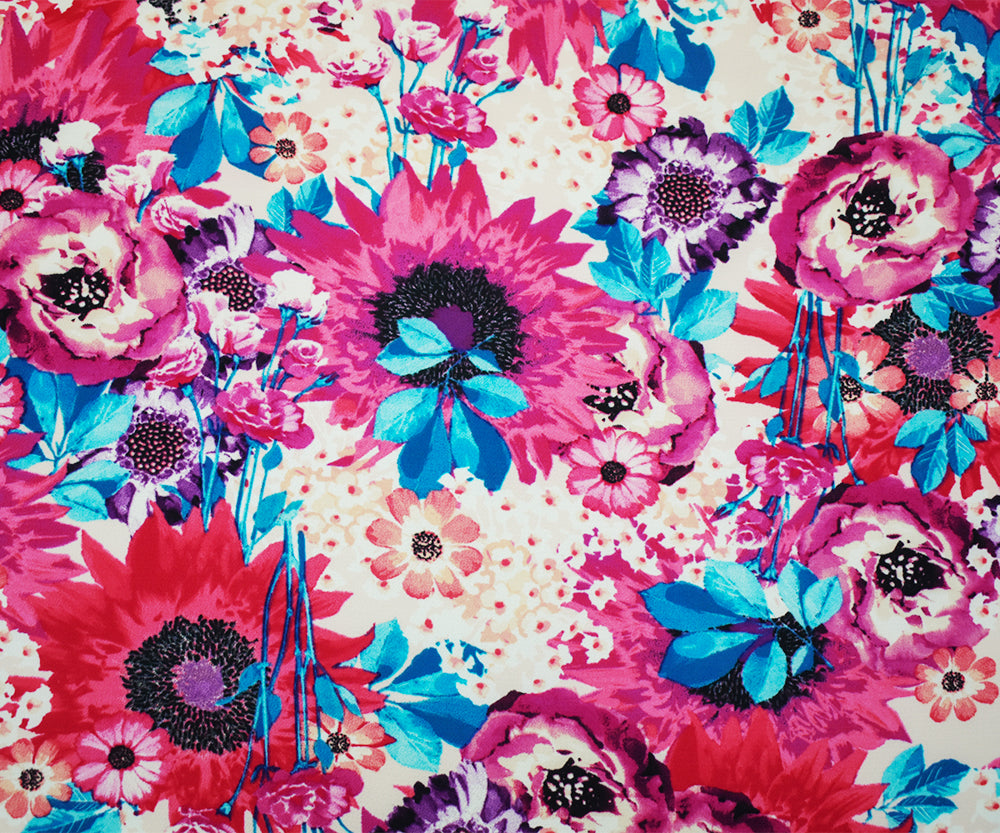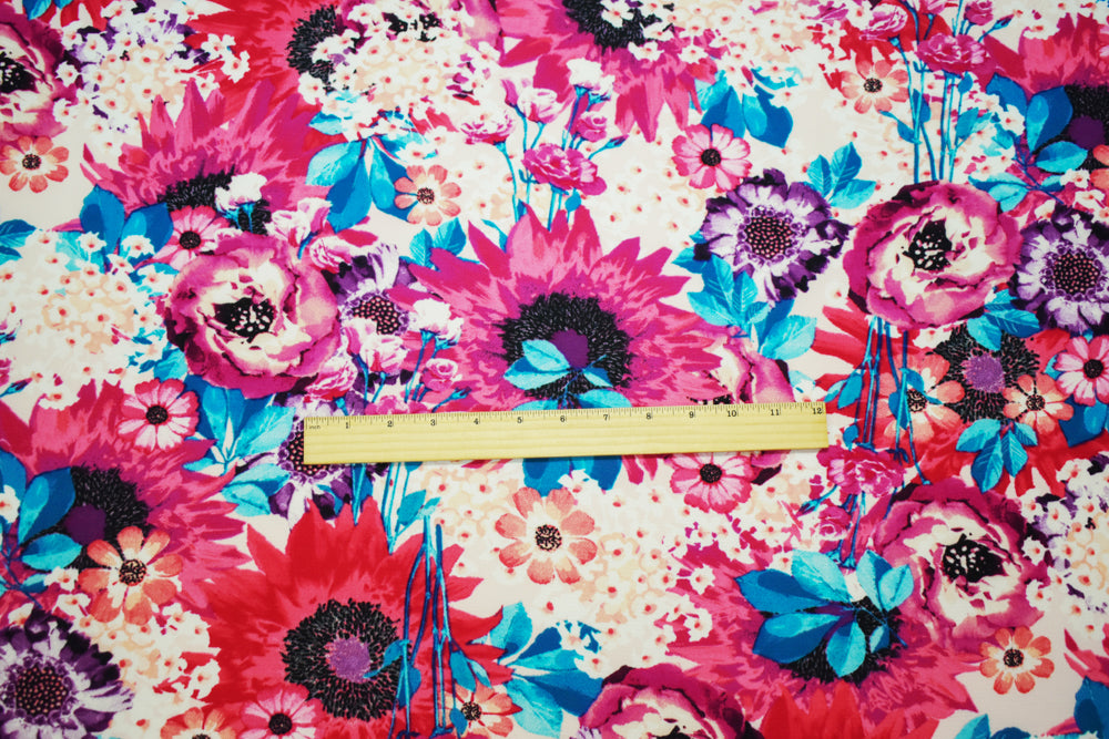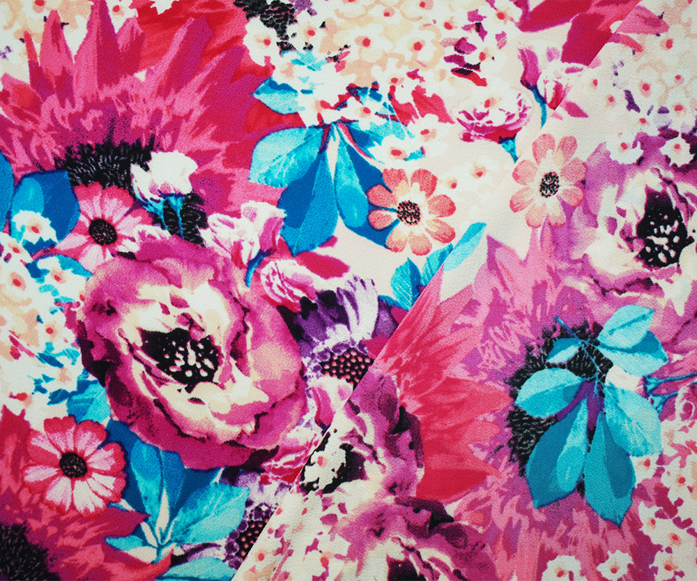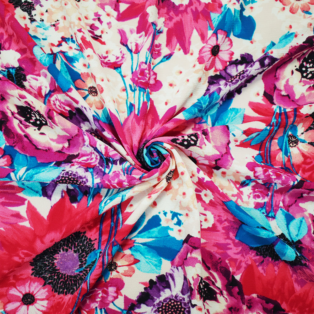 -Pink-Purple-Multi Poly Floral Printed Pebble Crepe Woven Fabric