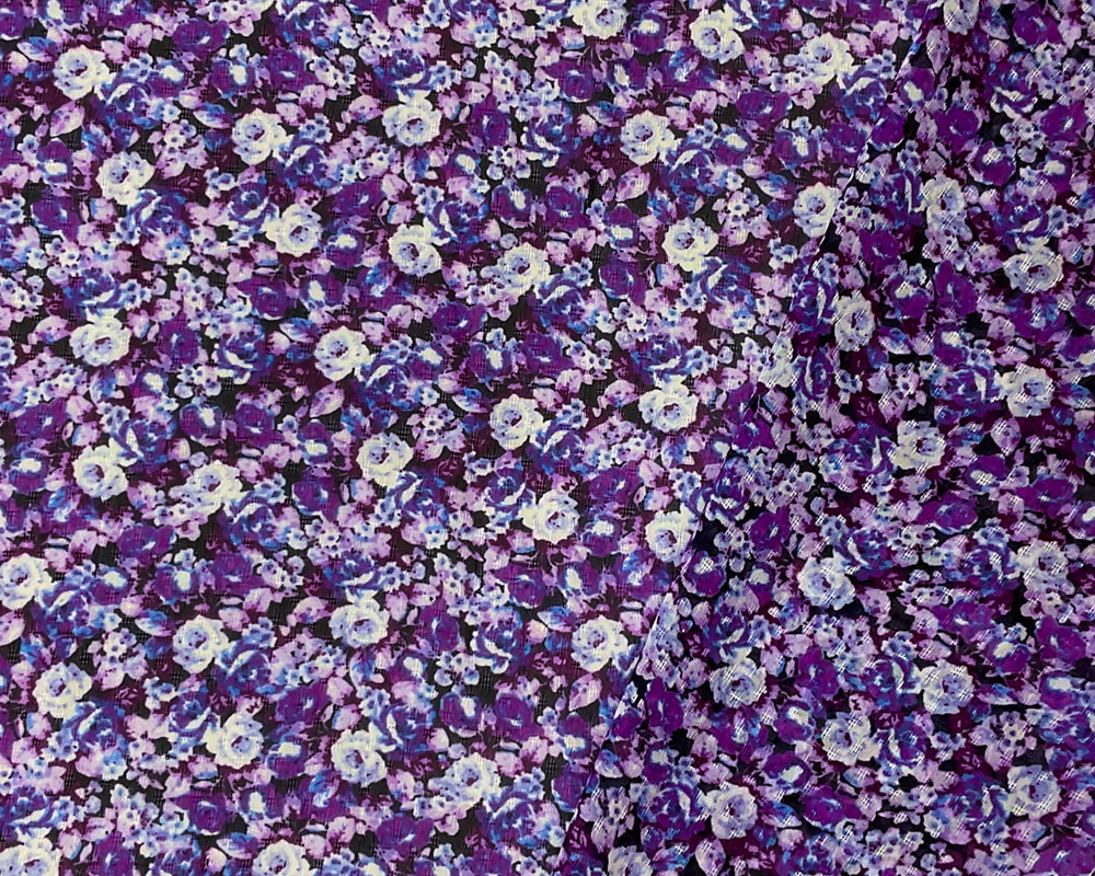 Purple-Black-Multi Poly Floral Printed Dobby Chiffon Woven Fabric