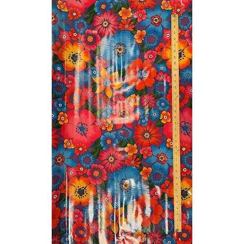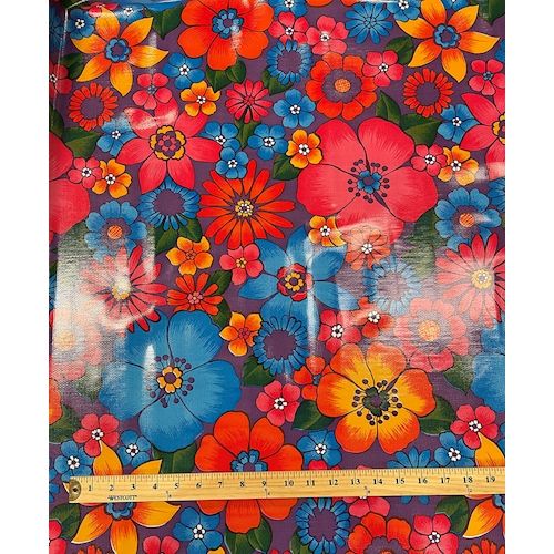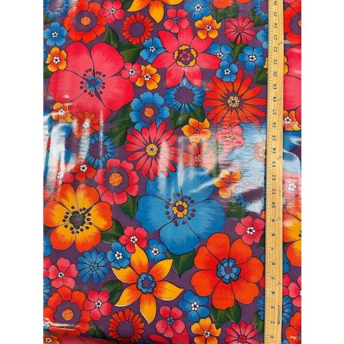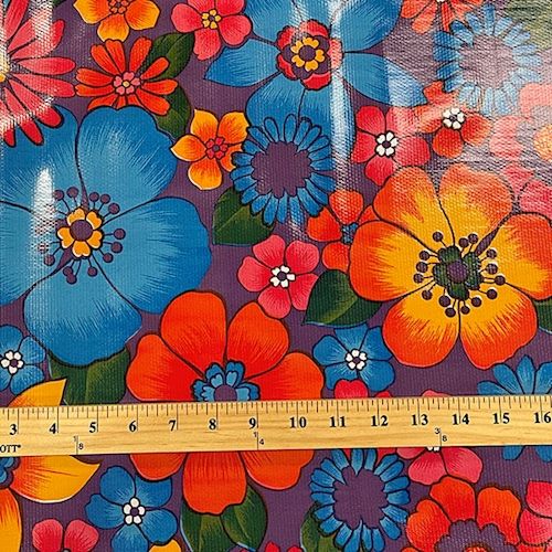 Multi Color Floral Print on Purple Oilcloth Fabric