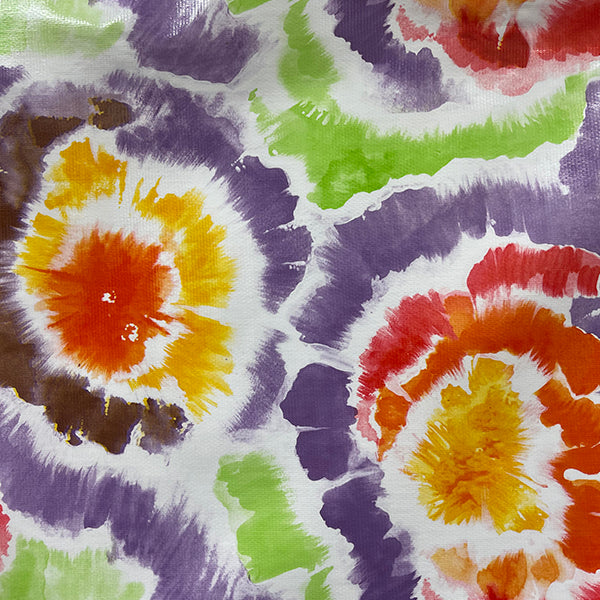Purple Multi Tie Dye Print on White Oilcloth Fabric
