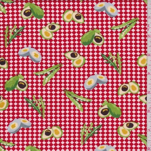 Red Check/Veggie Double Brushed Jersey Knit Fabric