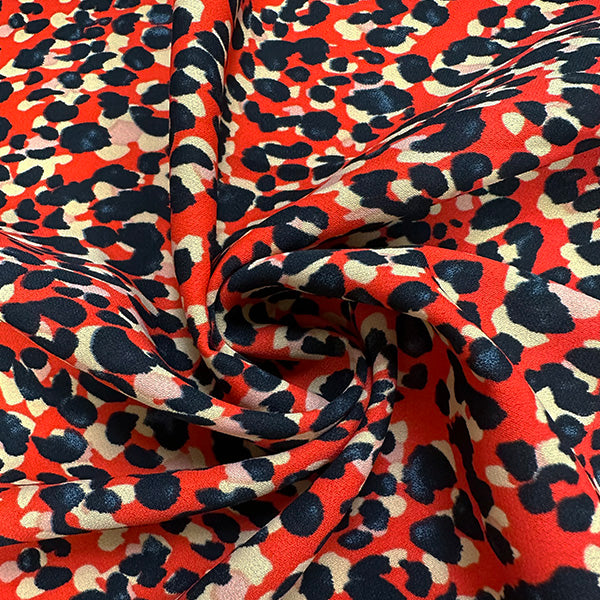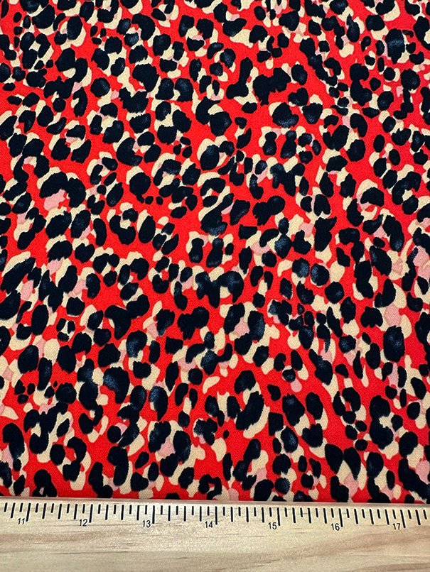 Red Multi Cheetah Animal Print Poly Georgette Fabric