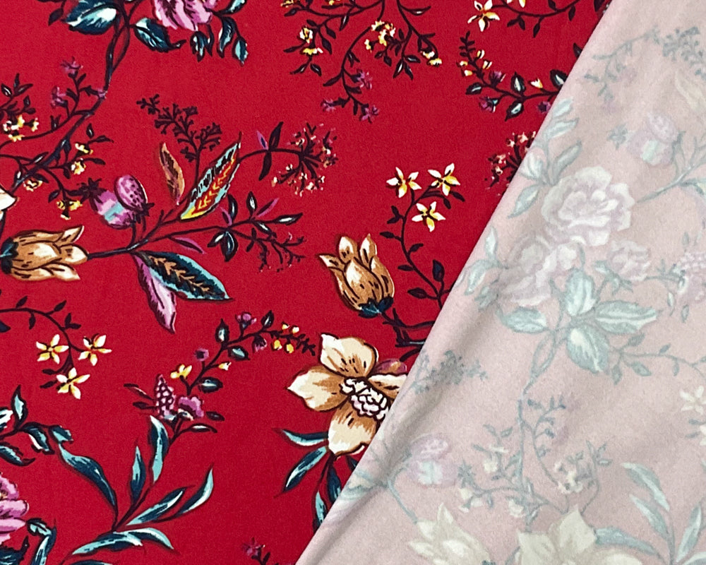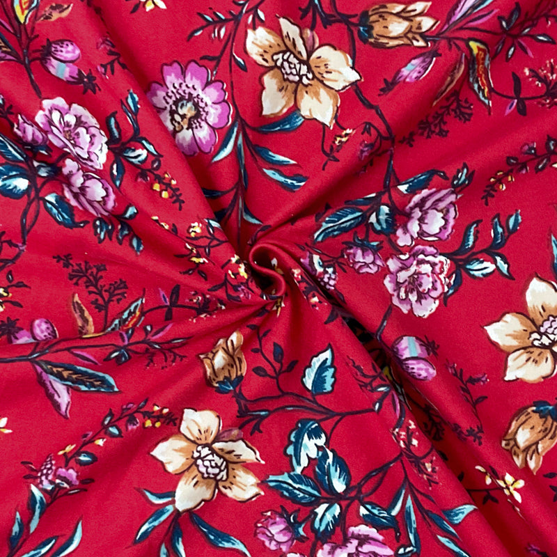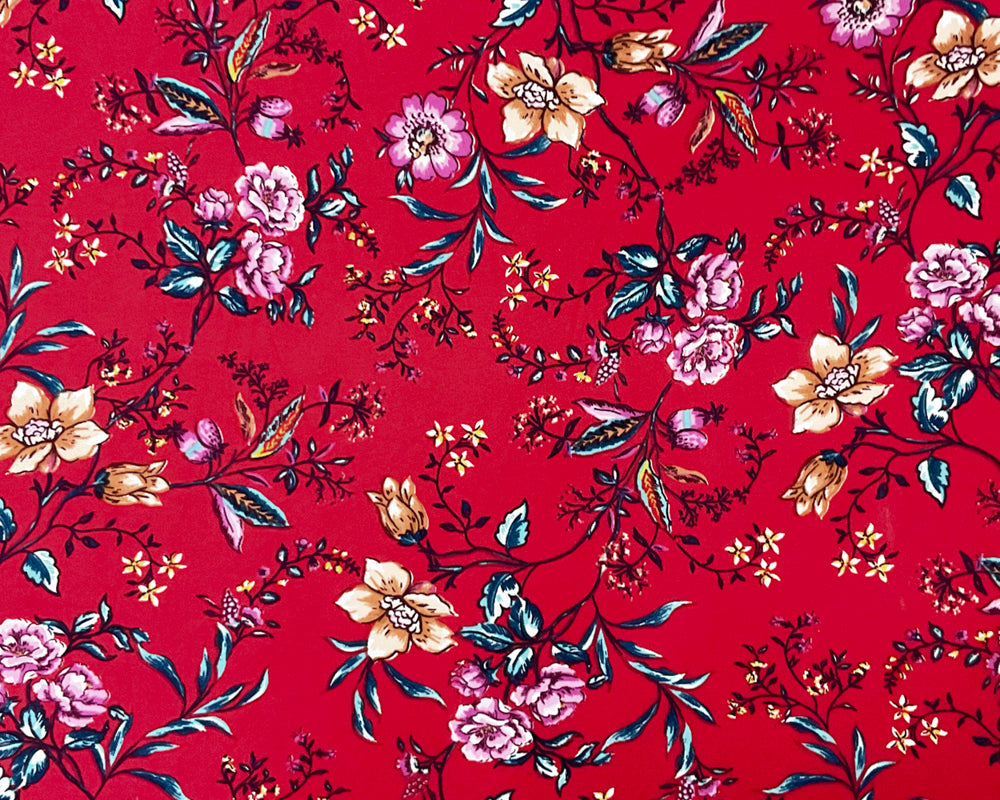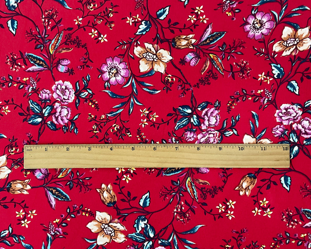 Red-Multi Poly Stretch Floral Print DB Jersey Knit Fabric