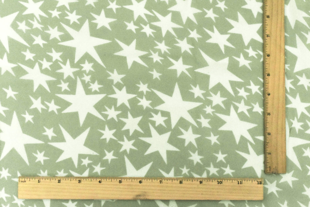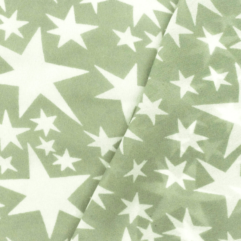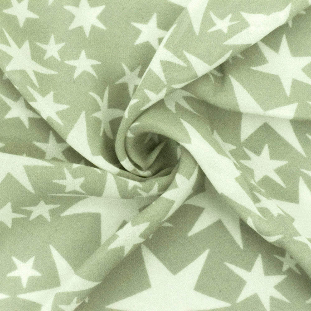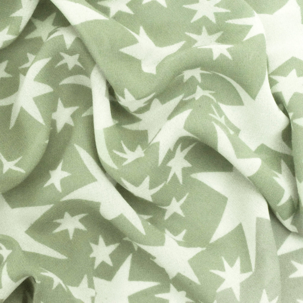 Sage Green-White Shooting Star Printed Rayon Georgette Woven Fabric