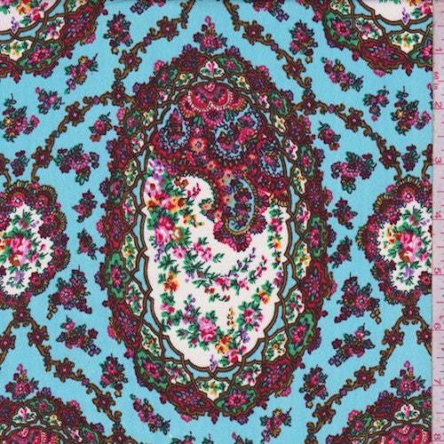 Sweet Blue/Multi Pendant Trellis Printed Crepe Faille Fabric