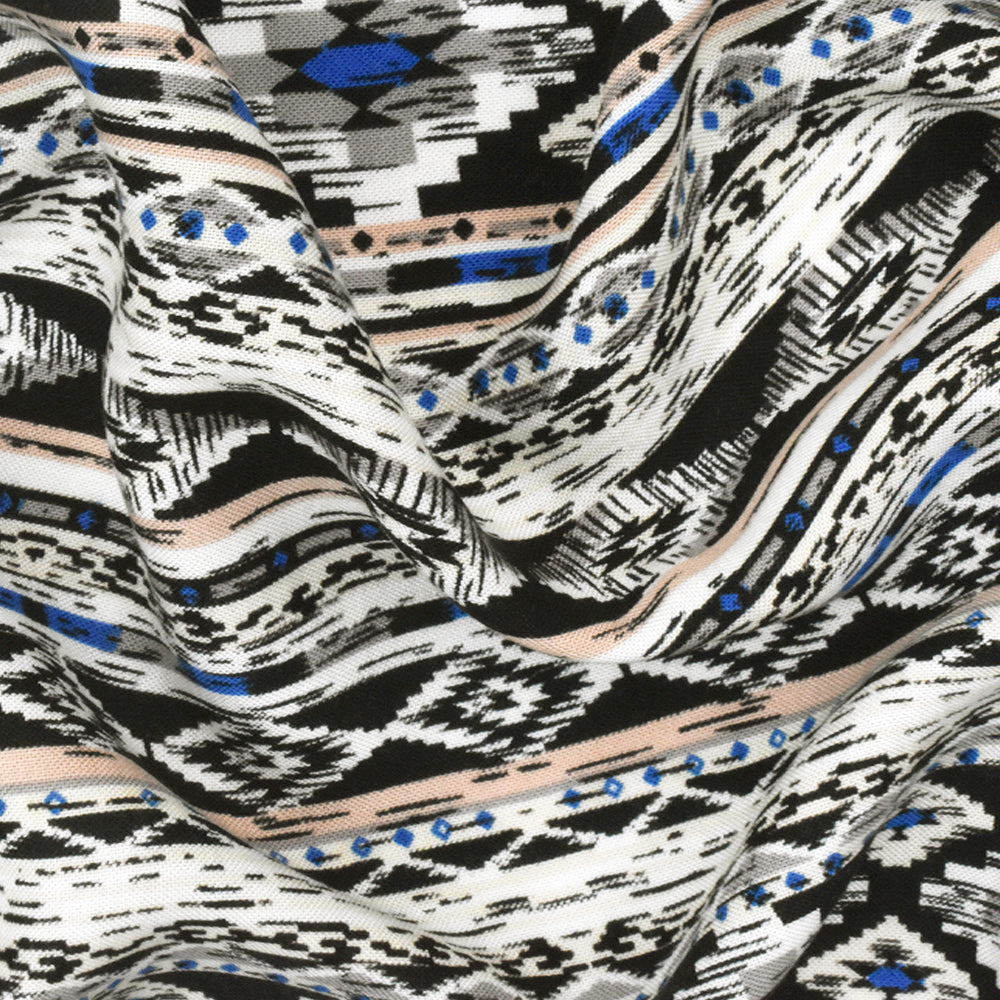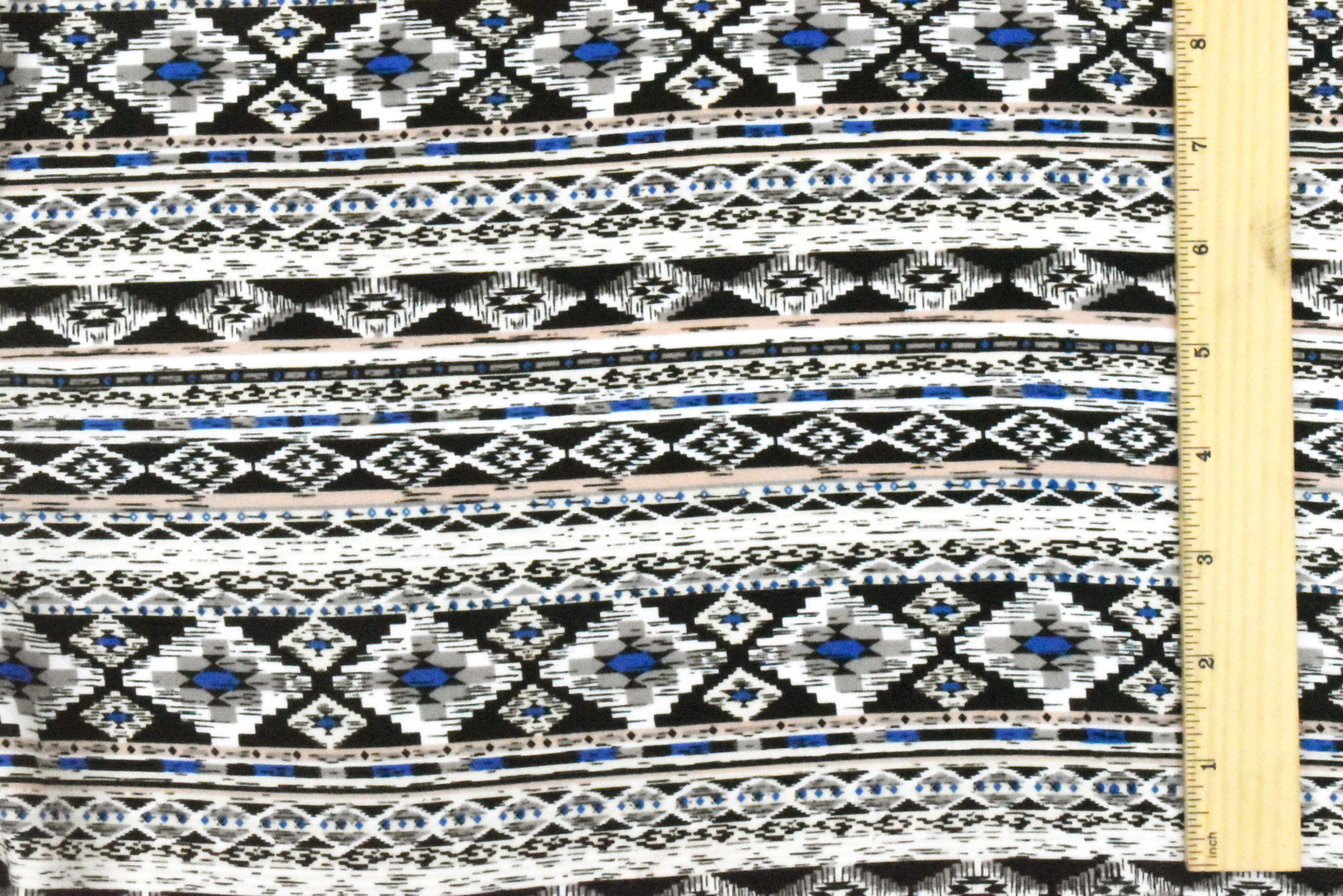 White-Beige-Multi Aztec Stripe Printed Rayon Challis Woven Fabric