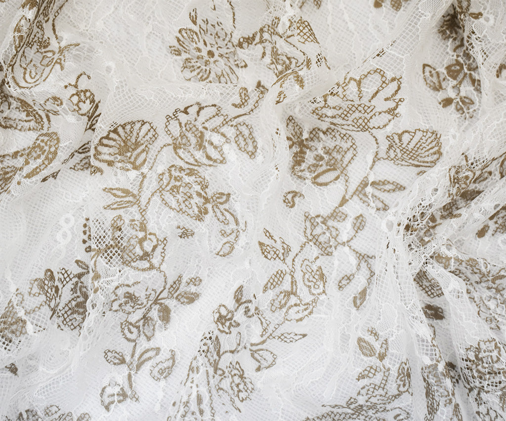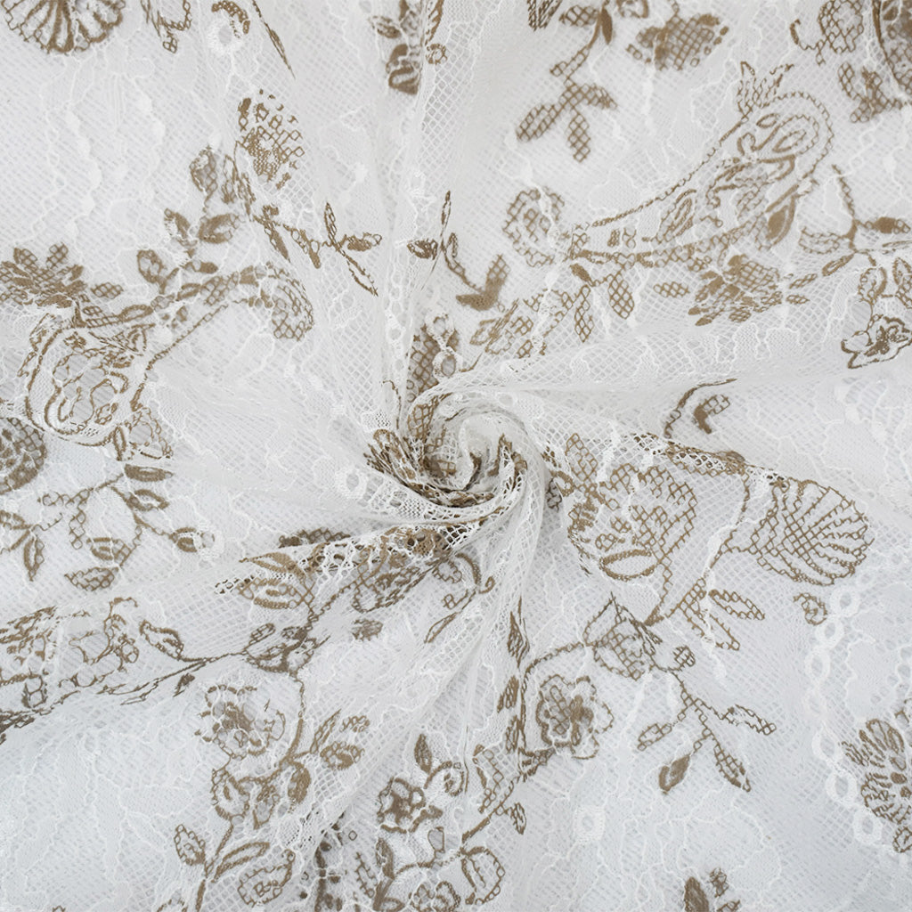White-Brown Nylon Floral Printed Lace Mesh Knit Fabric