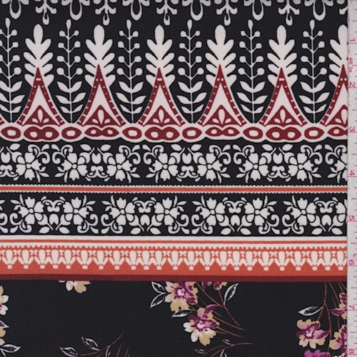 White/Persimmon/Maroon Deco Matte Jersey Knit Fabric