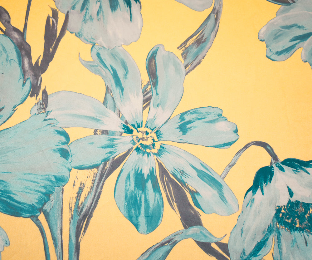 Yellow-Blue-Multi Floral Printed Poly Chiffon Woven Fabric