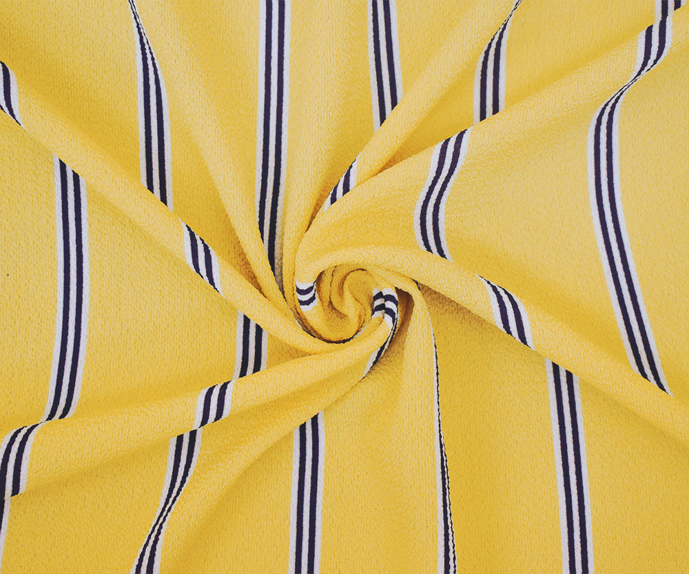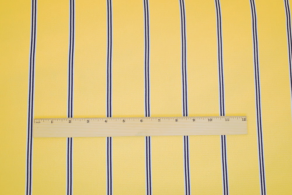 Yellow-Navy-White Stripe Printed Poly Crepe Georgette Woven Fabric
